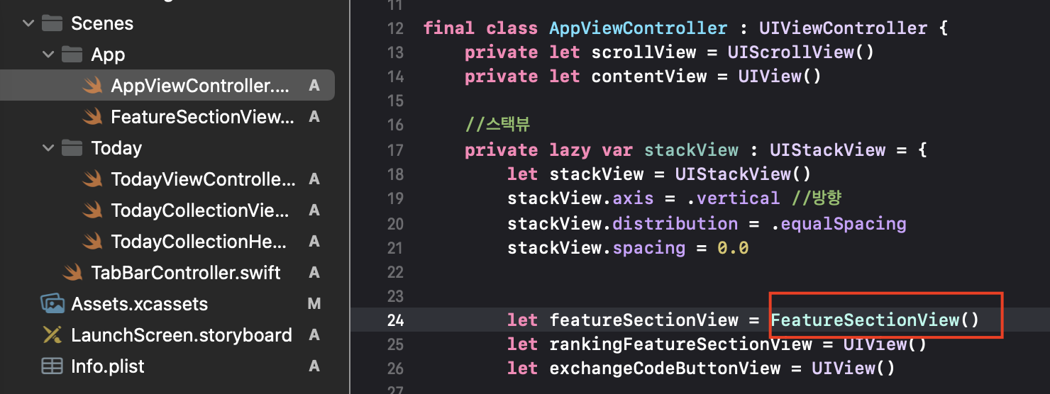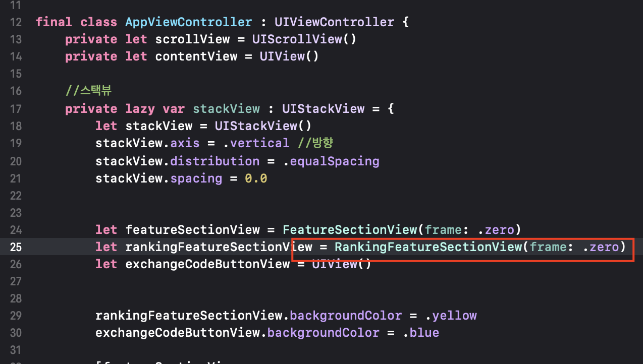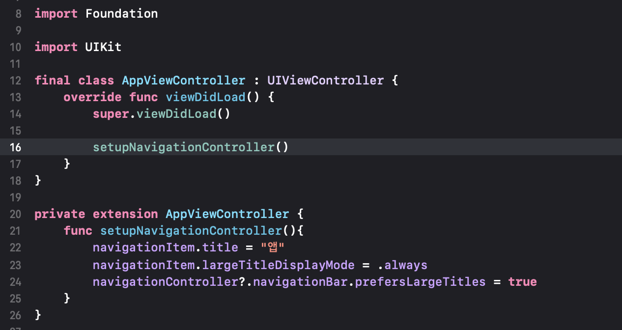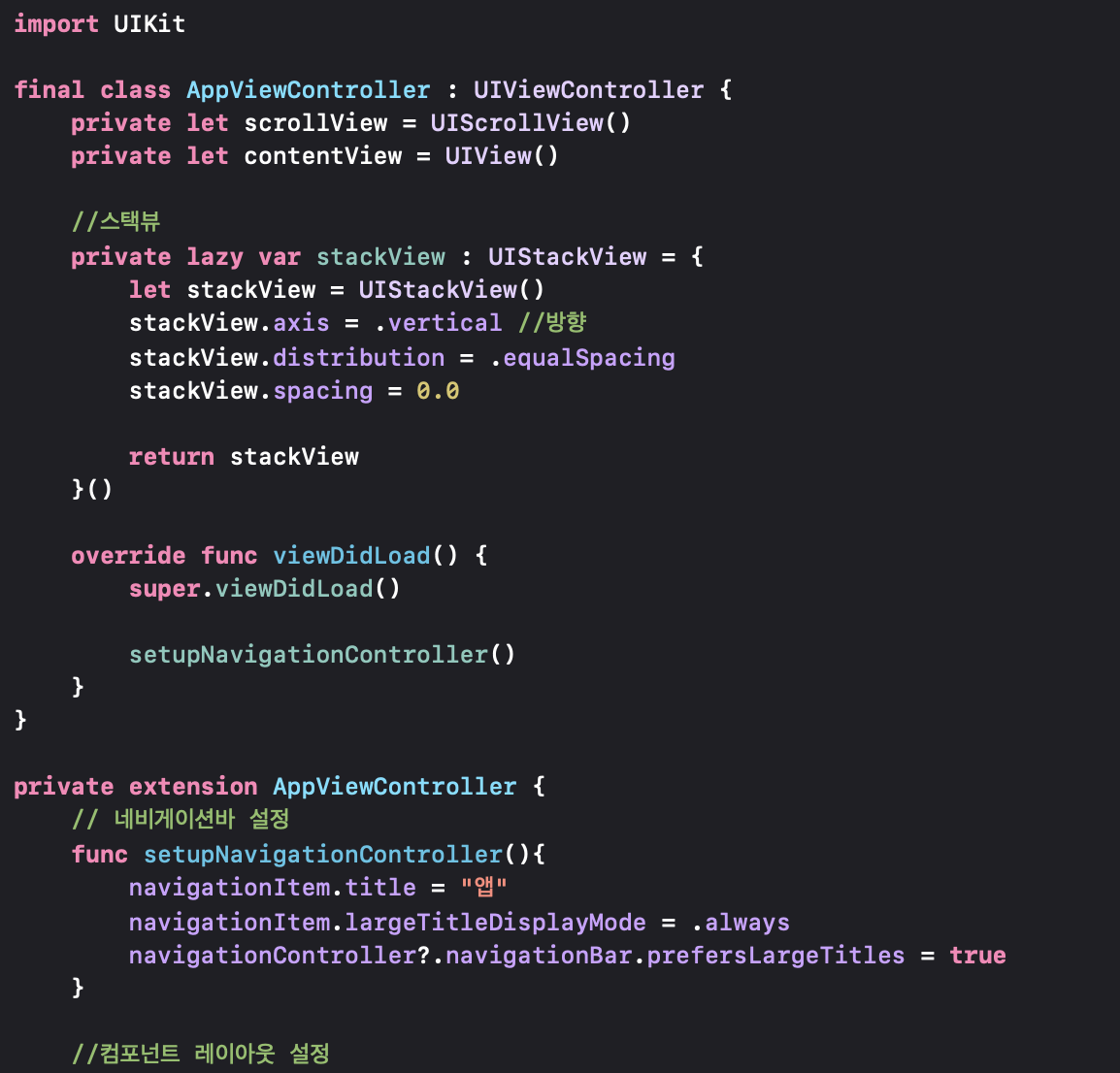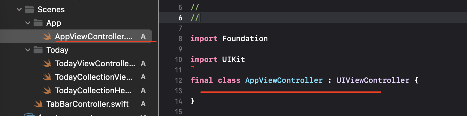 우선 앱 뷰컨트롤러 파일을 만들고 클래스를 구현합니다.