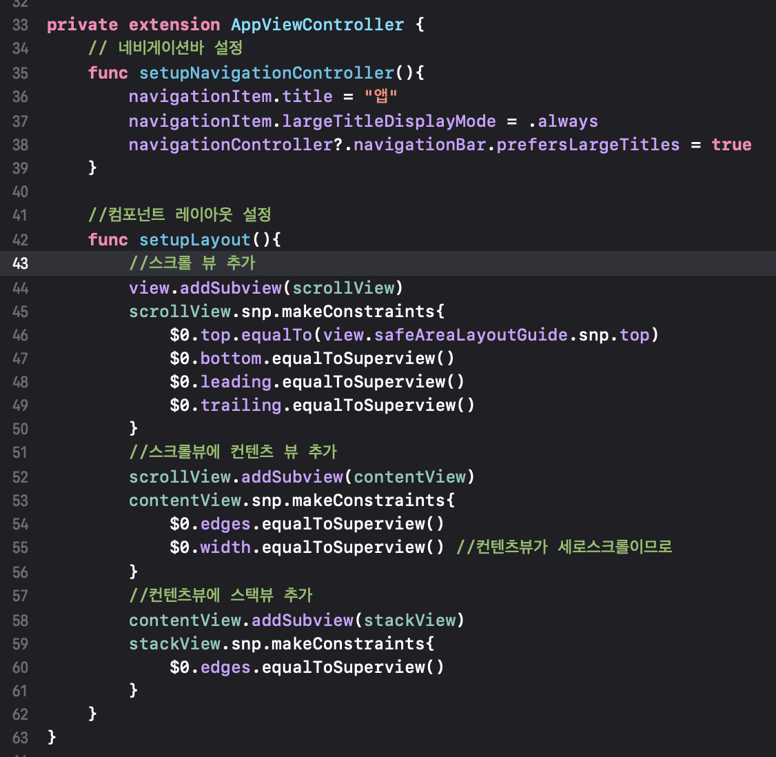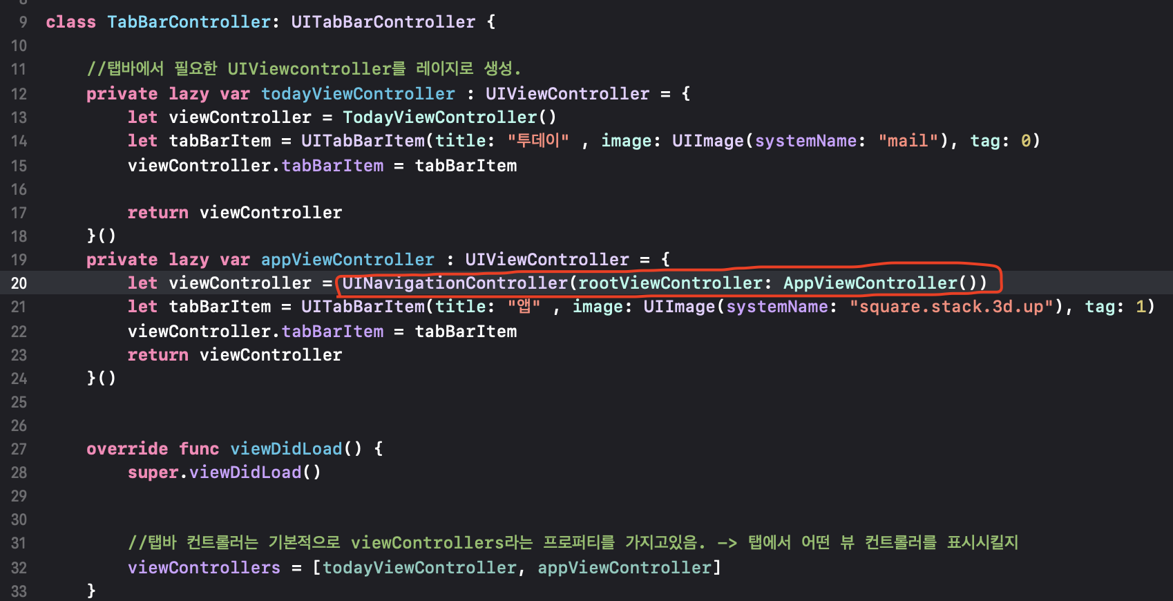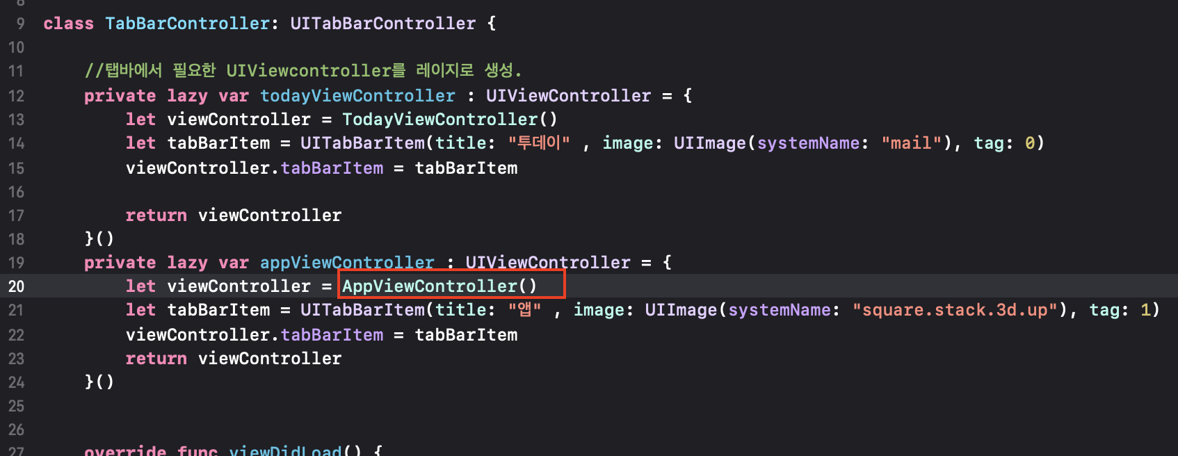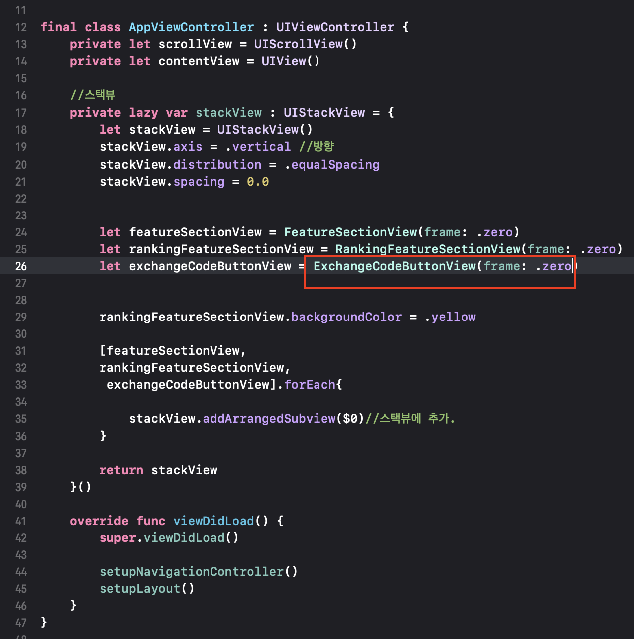 우선 앱 뷰컨트롤러 파일을 만들고 클래스를 구현합니다.
