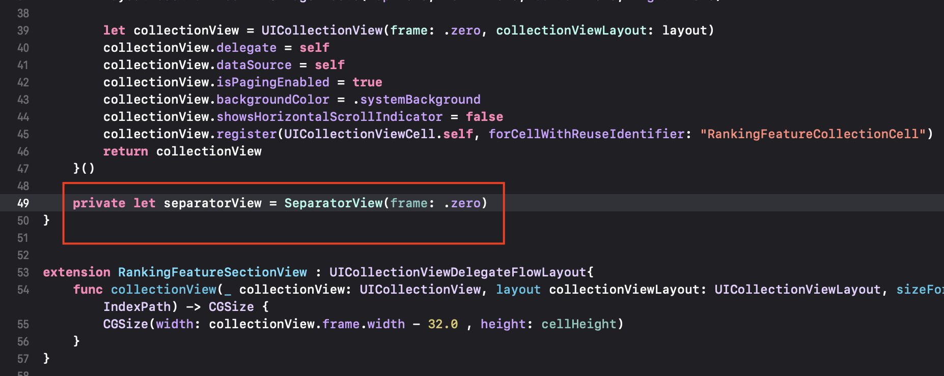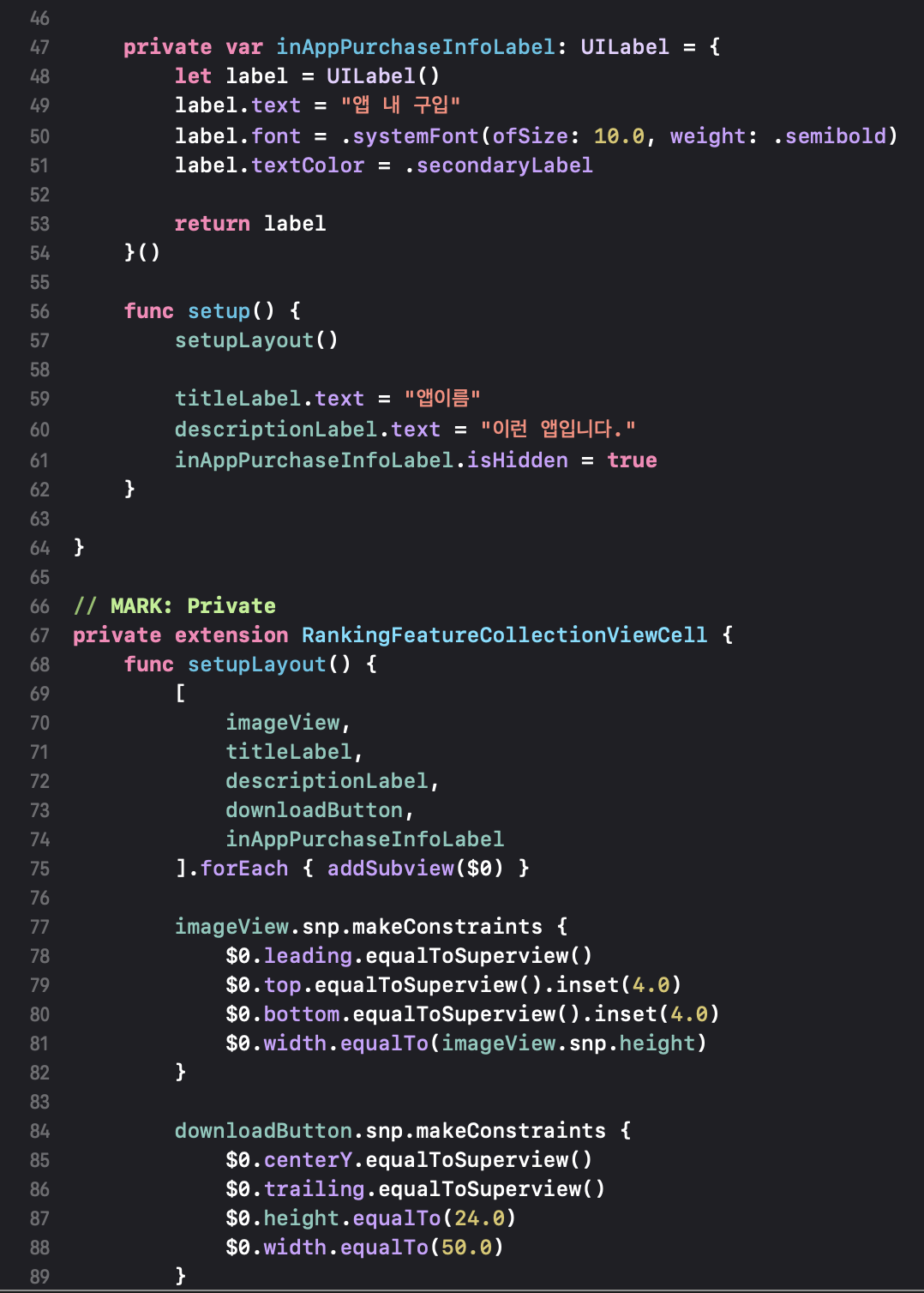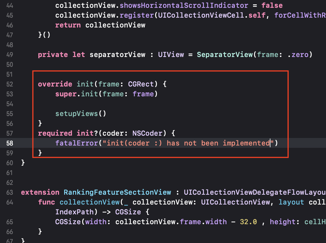Ranking Feature Section의 UICollectionView 구현.