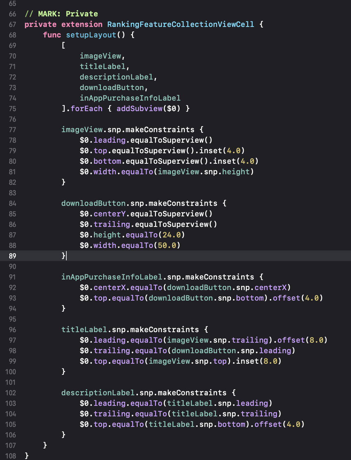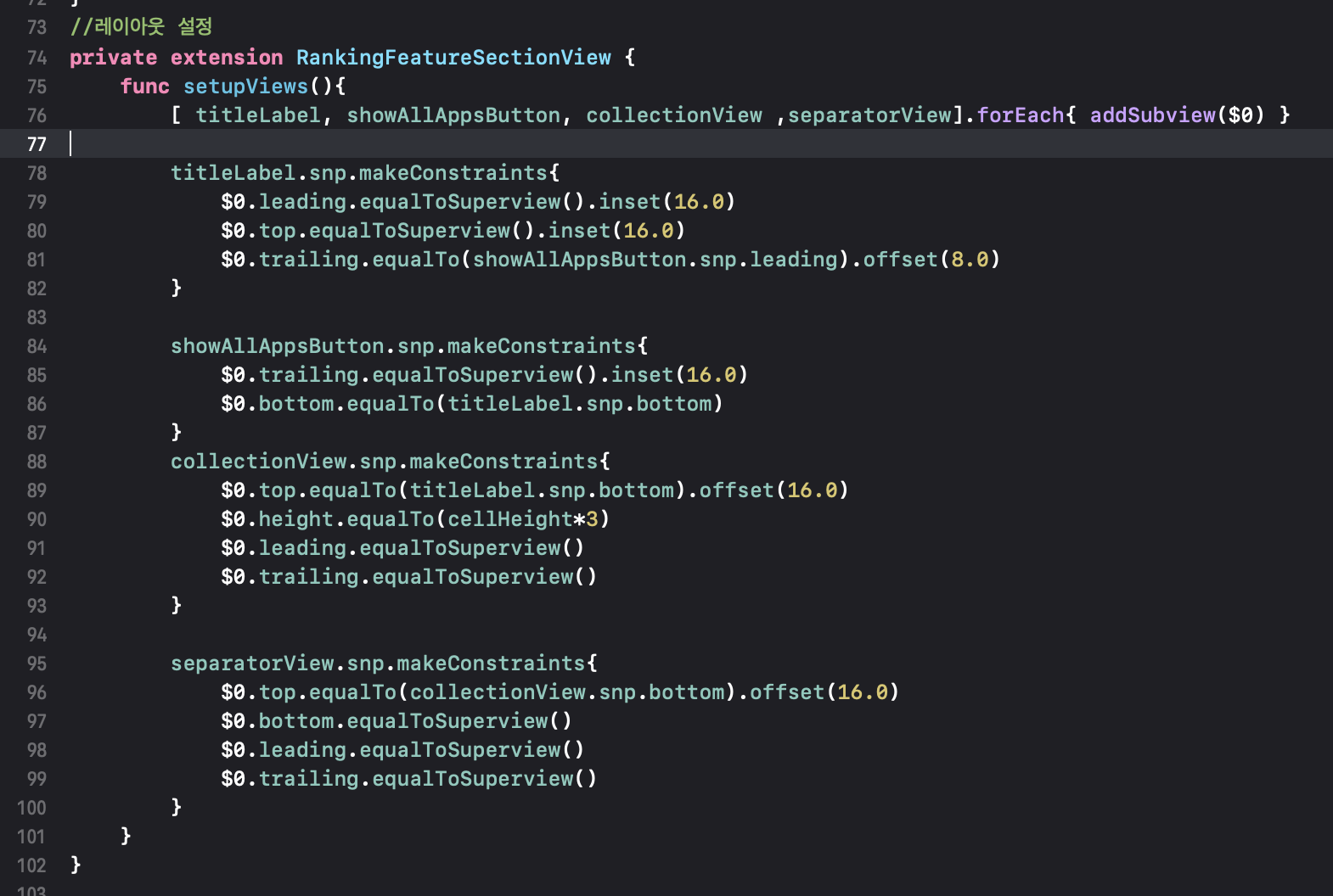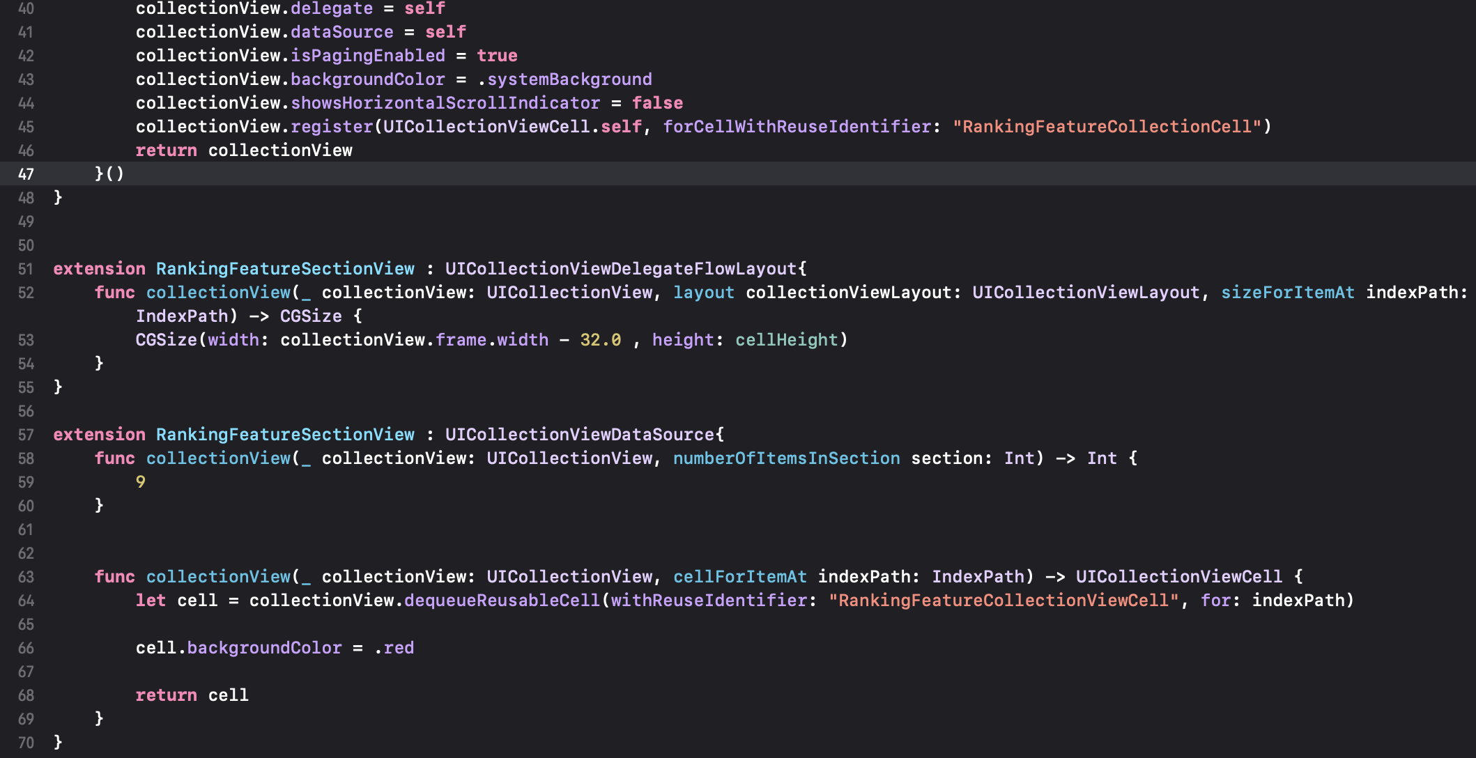 Ranking Feature Section의 UICollectionView 구현.