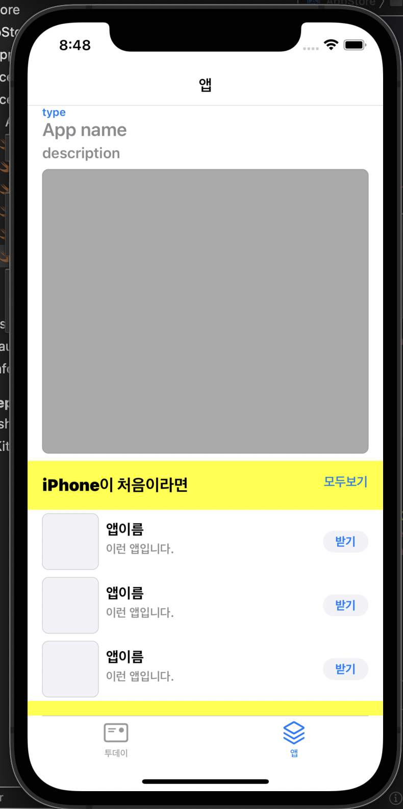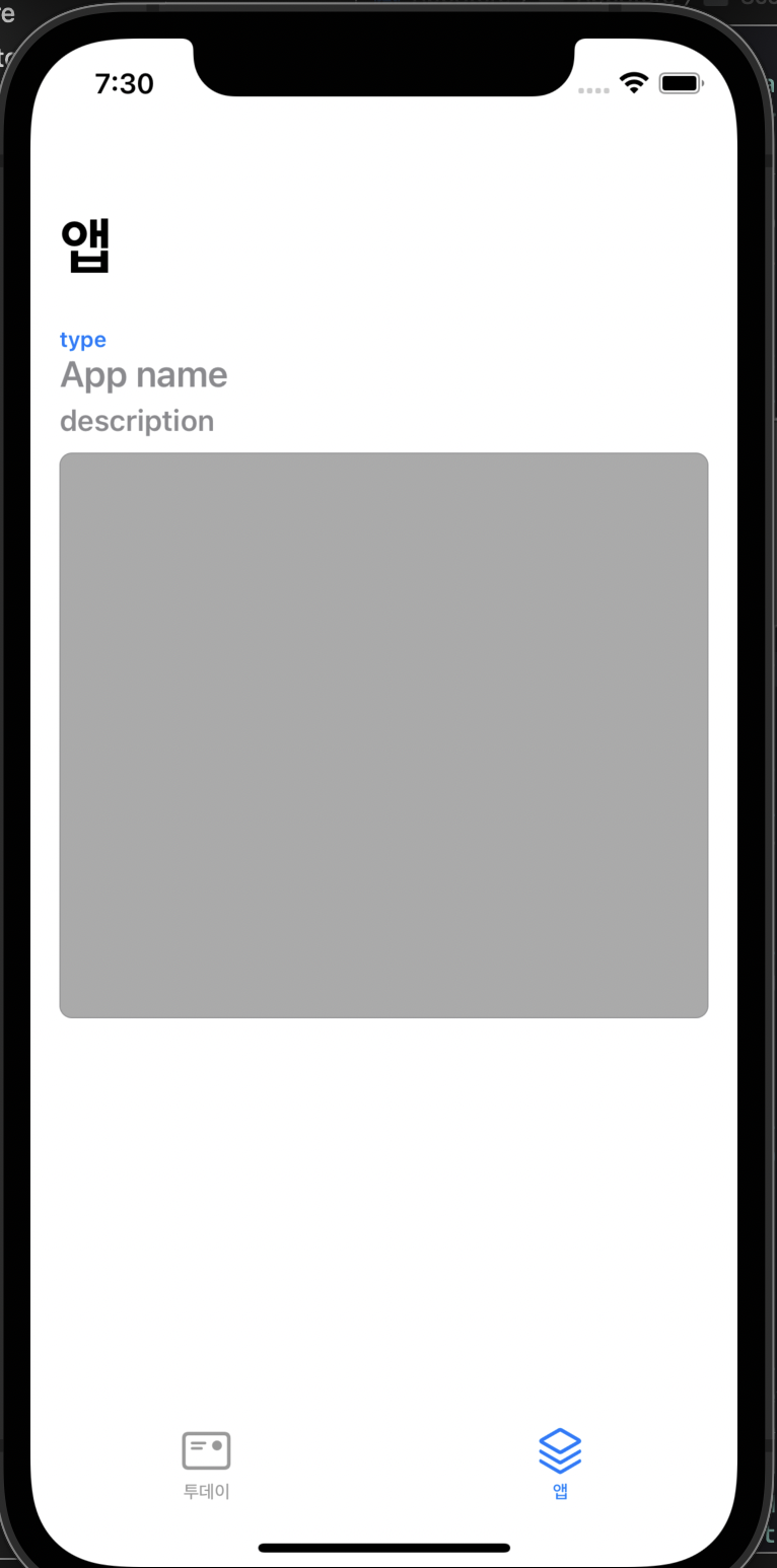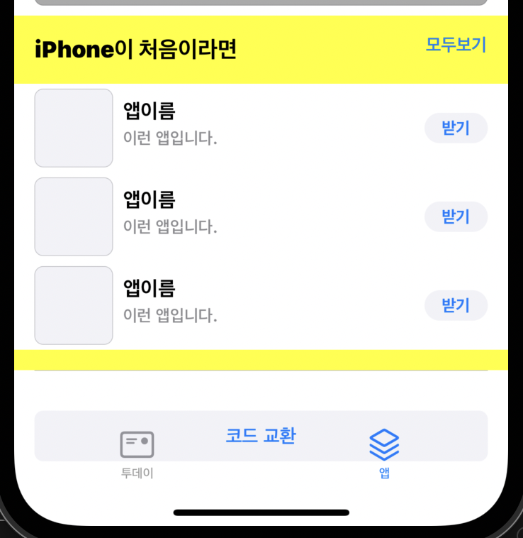 다음은 앱 탭의 UI를 구성해보겠습니다.