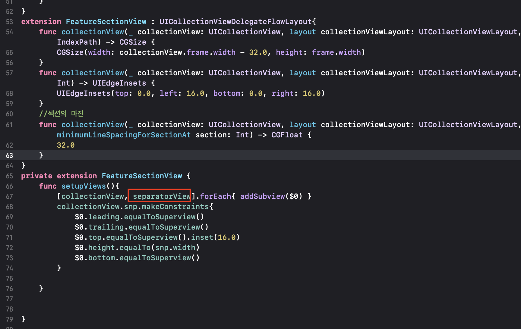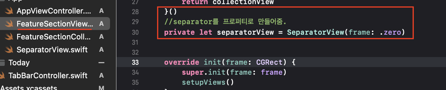 컬렉션뷰의 세퍼레이트를 구현하겠습니다.