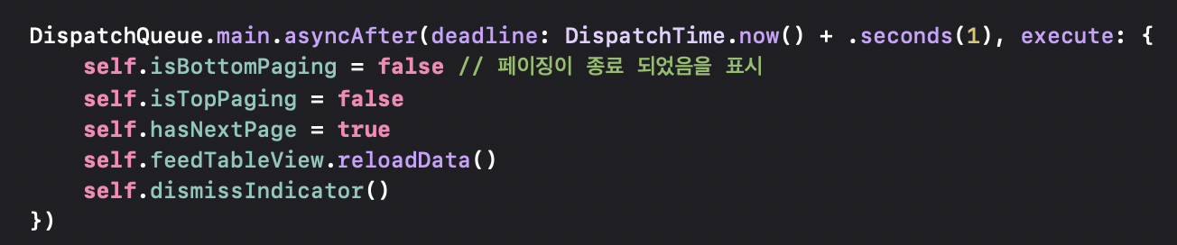 메소드가 끝난 후 페이징 가능 상태값이 1초동안 변하지 않도록 딜레이를 주어 해결할 수 있었습니다.