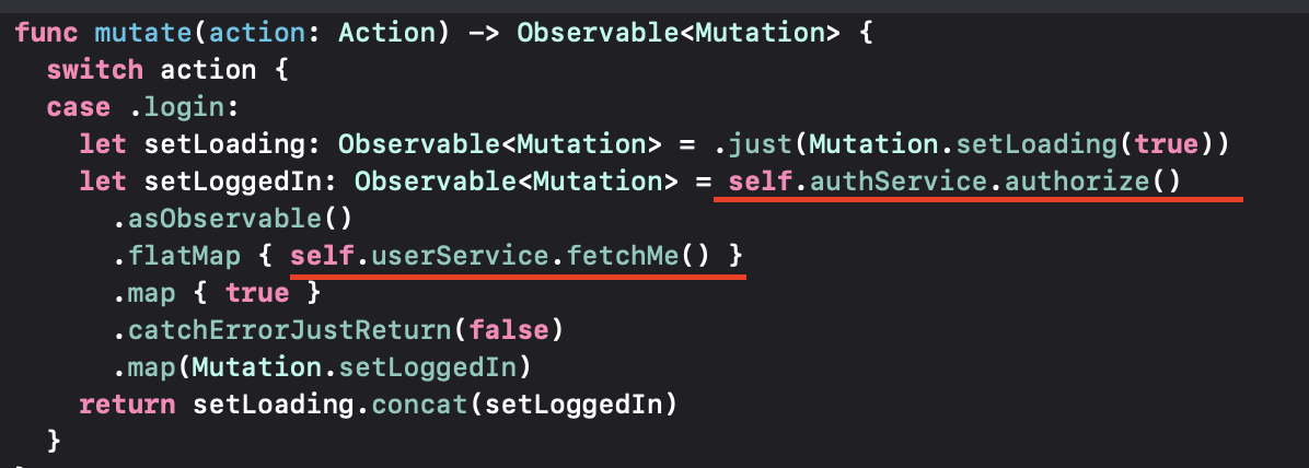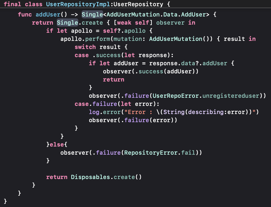 Rx로 콜백을 처리하지 않고 Completion 구조로 받아와서 그 콜백 내에서 옵저버로 콜을 해주고 있기 때문에