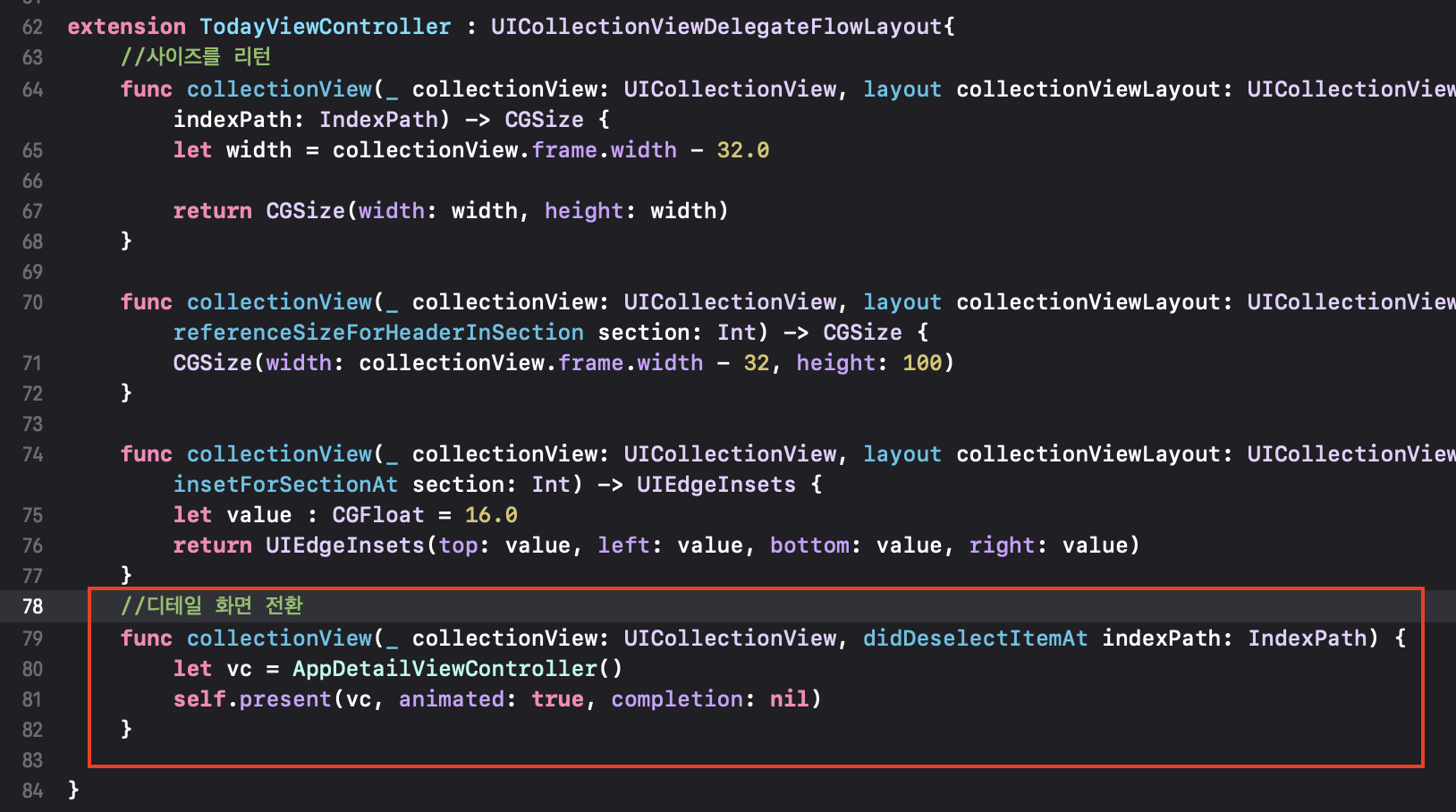 TodayViewController의 컬렉션 뷰에서 UIViewController를 프레젠터로 넘겨주도록 구현.