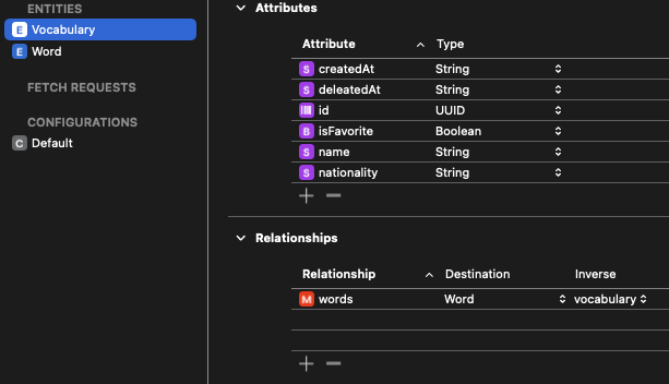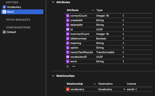 이에 저는 단어장, 단어 데이터를 로컬에서 관리하기 위해 CoreData를 도입할 것을 제안하였습니다.