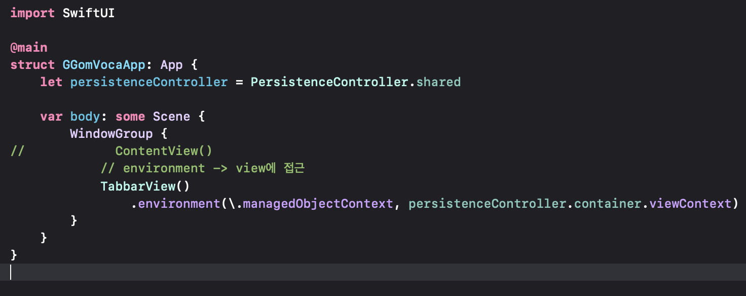 이제 앱에서 CoreData를 initialize해주어야 사용 가능하겠죠?