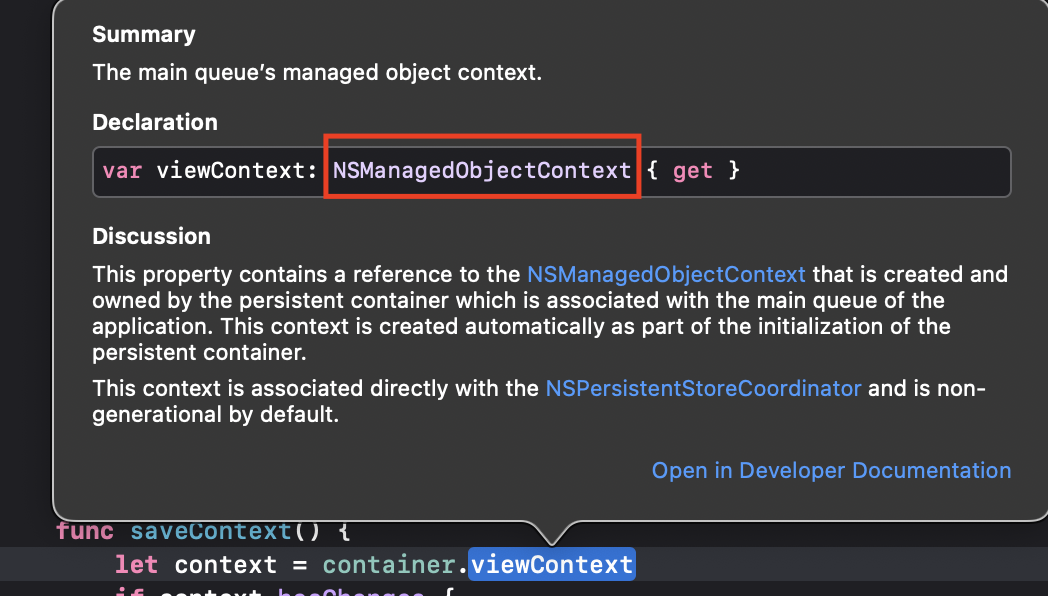 NSPersistentContainer는 NSManagedObjectModel, NSManagedObjectContext, NSPersistentStoreCoordinator를 참조할 수 있습니다.
