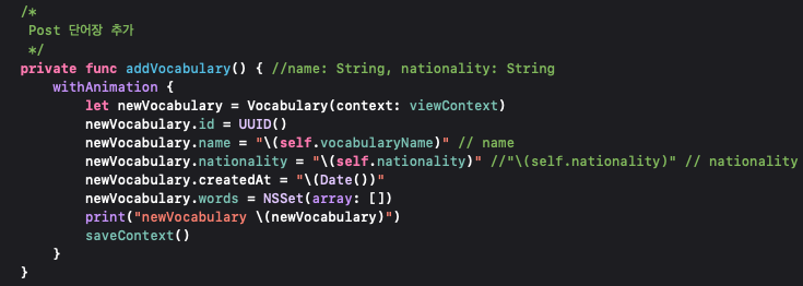 객체 지향 방식으로 저장된다는 것이 와닿지 않아서 직접 단어장을 추가하는 로직를 만들어보았는데요.