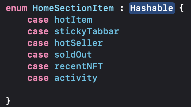 그리고 각 셀의 아이템들을 구분해줄 Enum타입을 정의해줍니다.
