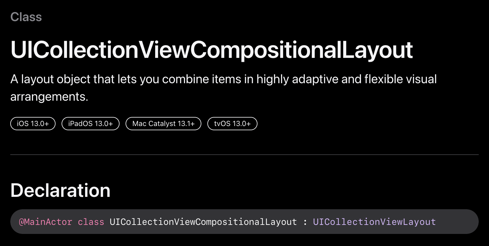 Compositional Layout의 정식 명칭은 UICollectionViewCompositionalLayout으로 CollectionViewLayout 타입이라고 합니다.