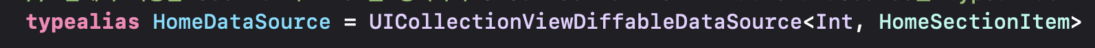 사용할 Section과 Item을 명시하여 UICollectionViewDiffableDataSource를 typealias로 생성합니다.