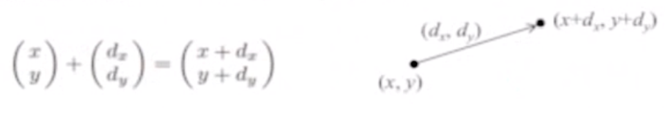 그 과정은 변이벡터 (dx, dy)를 원래 주어진 점에 더하여 벡터의 덧셈으로 표현될것이다. 앞에 것과 다른 점으로 곱셈이 아닌 덧셈으로 표현이 된다는 것이다.