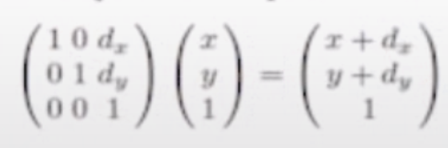 Translation을 살펴보면 주어진 점 x,y를 dx,dy만큼 이동시키는 것이다.