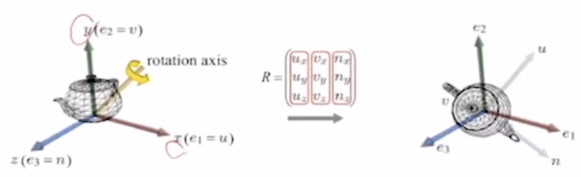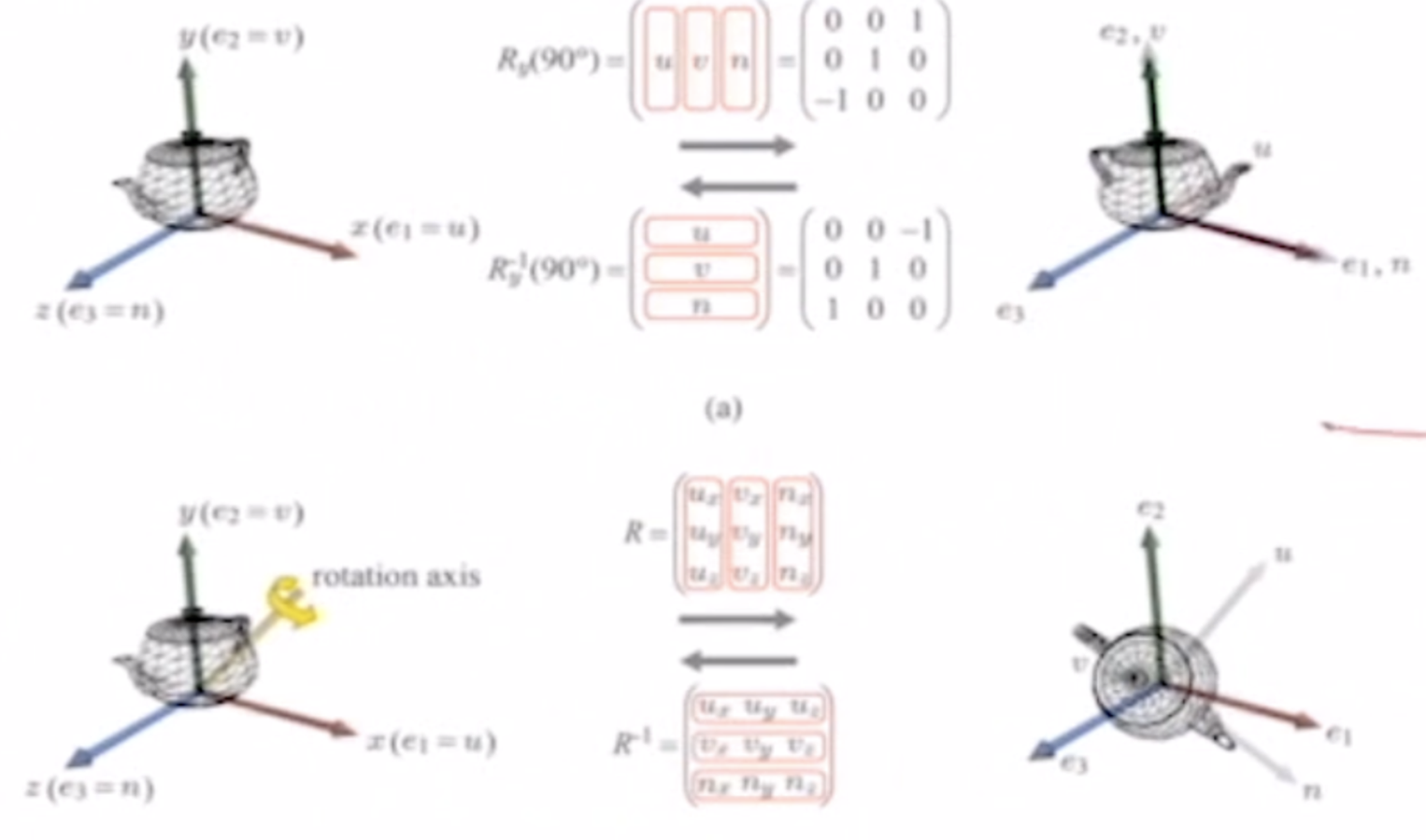 거꾸로 회전변환을 바로 알 수 있다면 u,v,n을 바로 구할 수 있을 것이다.