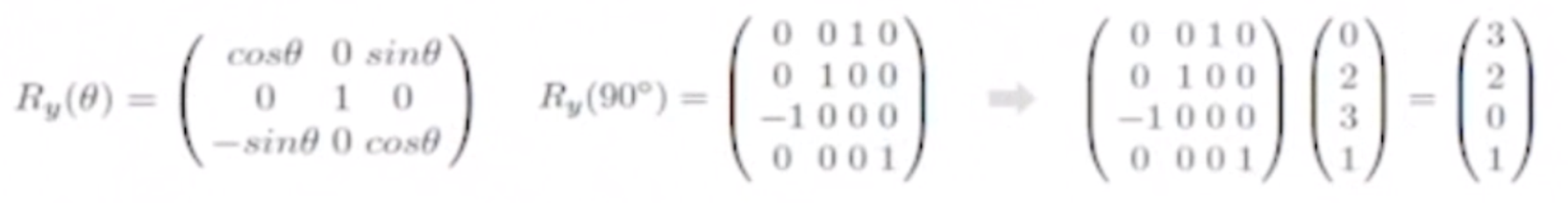 Y축을 중심으로한 Ratation 행렬은 다음과 같다.