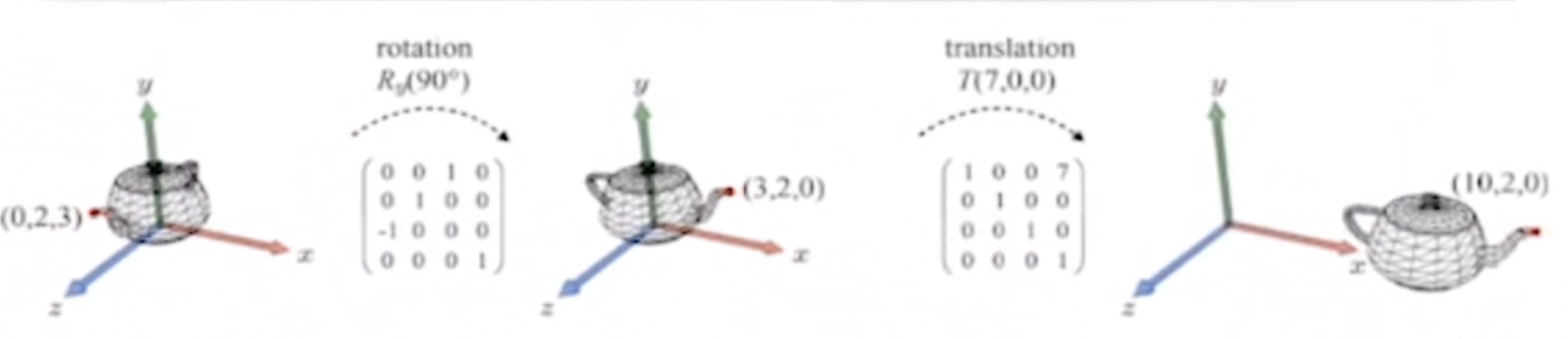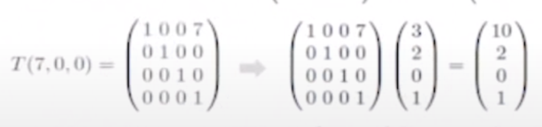 Translation은 x축으로 7만큼 이동하며 행렬은 다음과 같다.