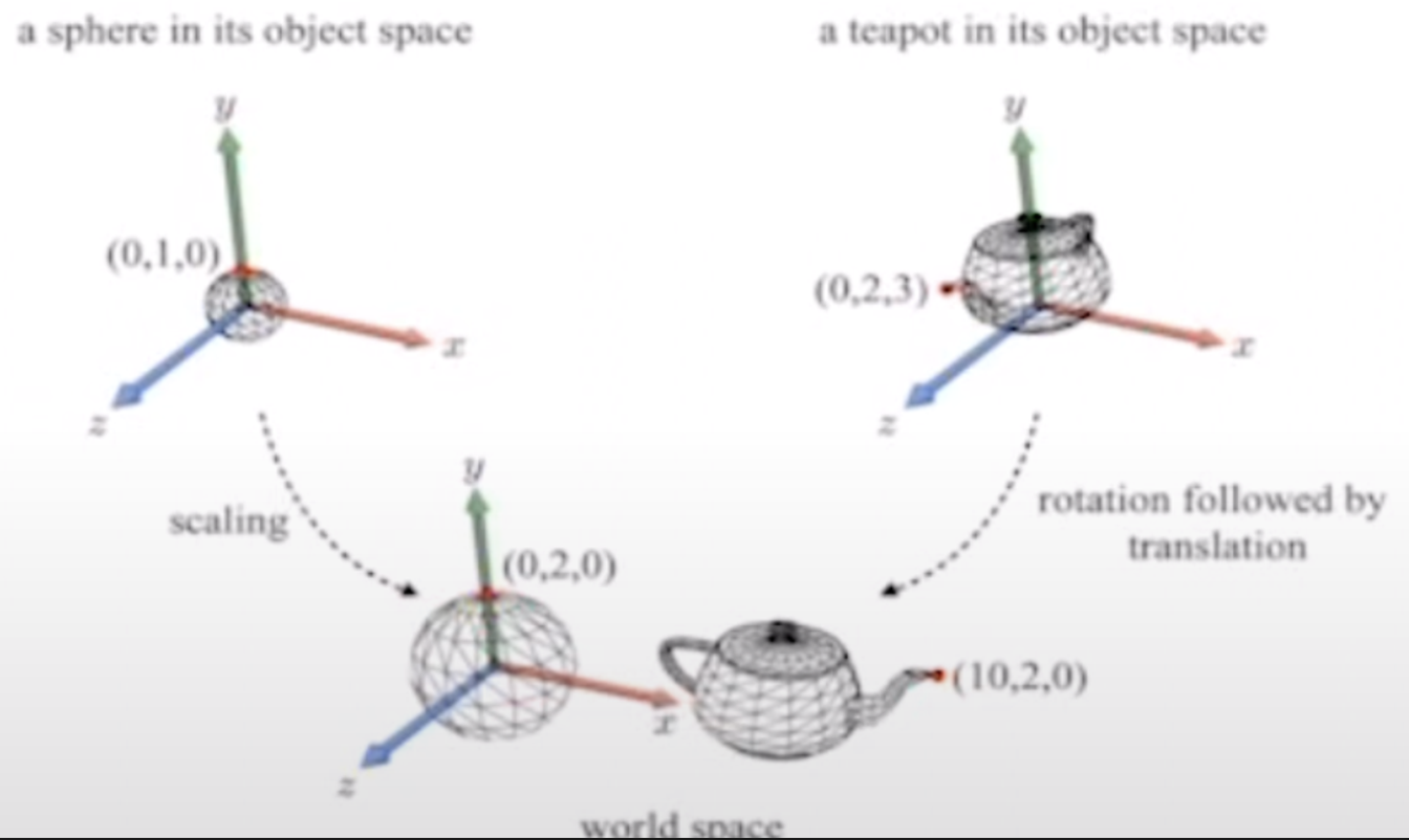 그때 그 물체는 object space와 붙어있어서 같이 움직인다라고 이해하자.