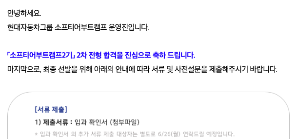 2차 코딩테스트까지 약 1주일이 안 남은 시점에 합격발표를 주었다.