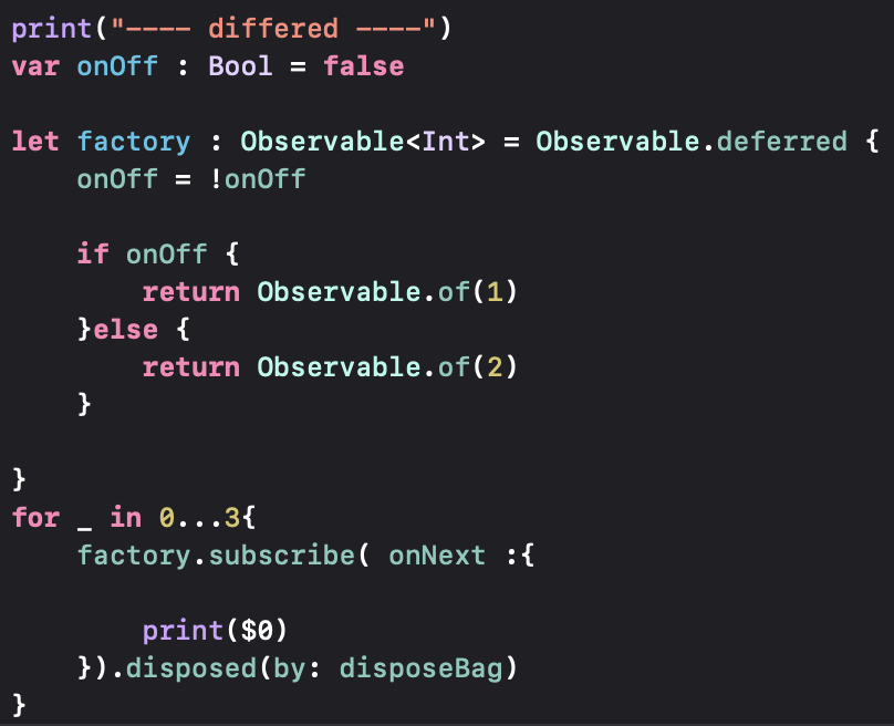 Observable.deferred로는 Observable factory를 통해서 Observable 시퀀스를 생성할 수 있는 연산자입니다.
