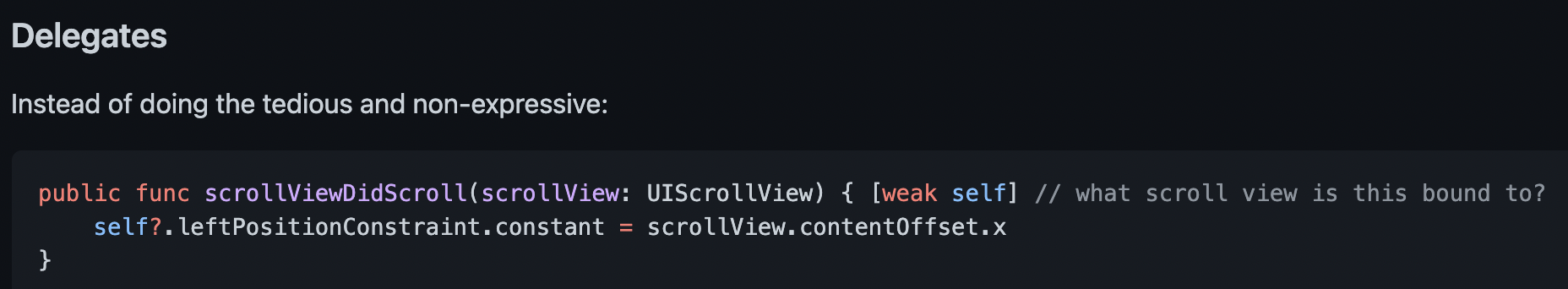 위 코드만으로는 어떤 스크롤뷰인지 알 수 없고 따로 딜리게이트를 선언해주어야합니다. 불편하죠