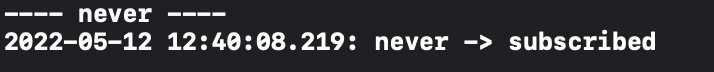 never가 subscribe되었다고 출력됩니다.