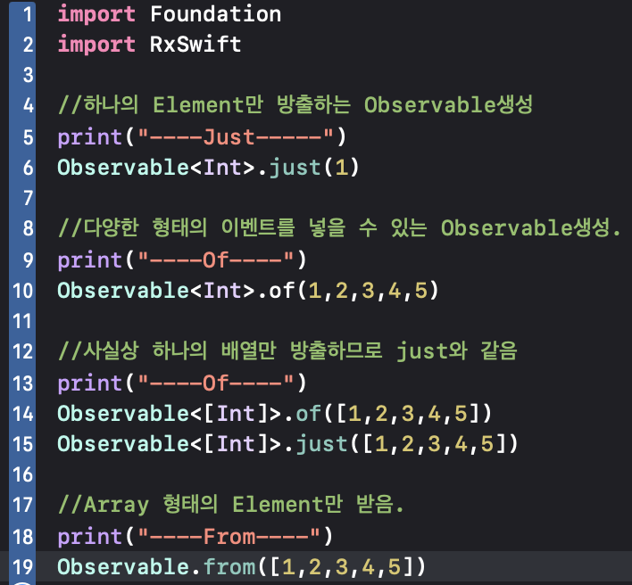 위 예시를 보시면 맨 처음에 Obervable이라는 것이 보이는데