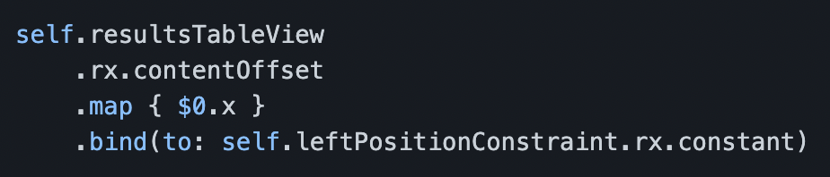 resultTableView의 contentOffset을 원하는 곳에 binding해주고 있습니다.
