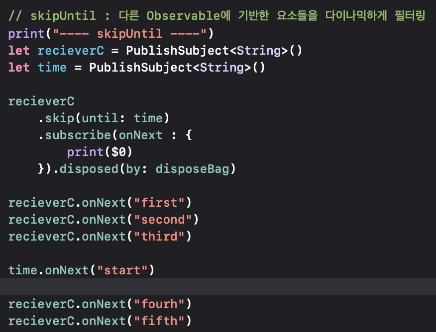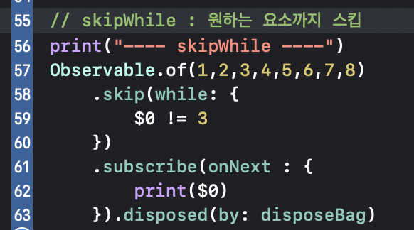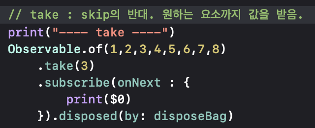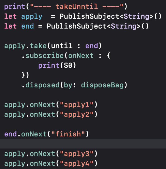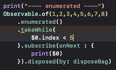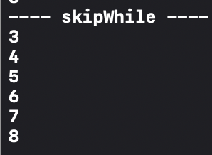 skip에 skipWhile과 skipUntil이 있었던 것처럼 take에도 takeWhile과 takeUntil이 존재합니다.