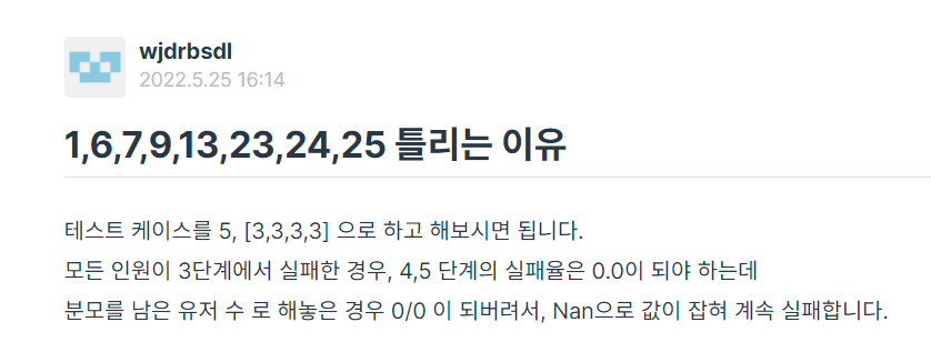 //정확도 70% 원인 분모가 0인경우를 생각 안 함. 도전을 한 번도 못한경우.