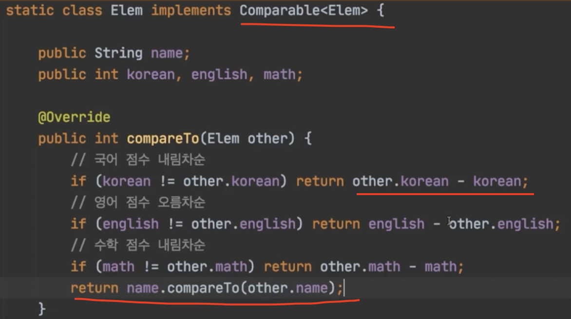객체- other.객체 -> 오름차.