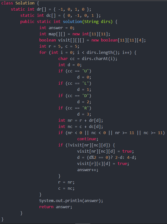 [프로그래머스] level2. 방문 길이 (자바 JAVA)