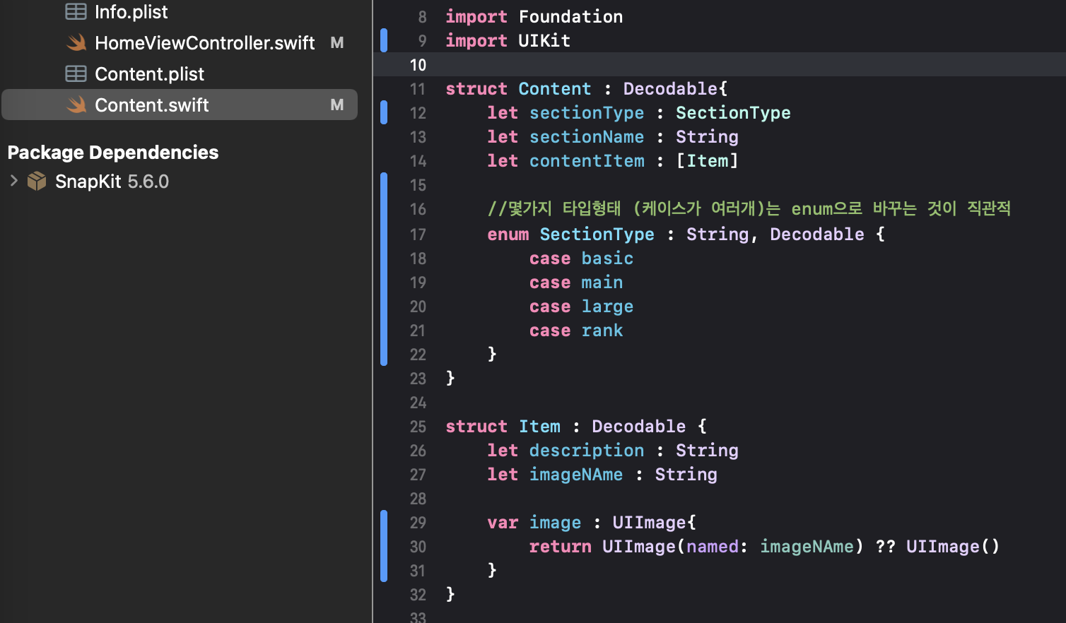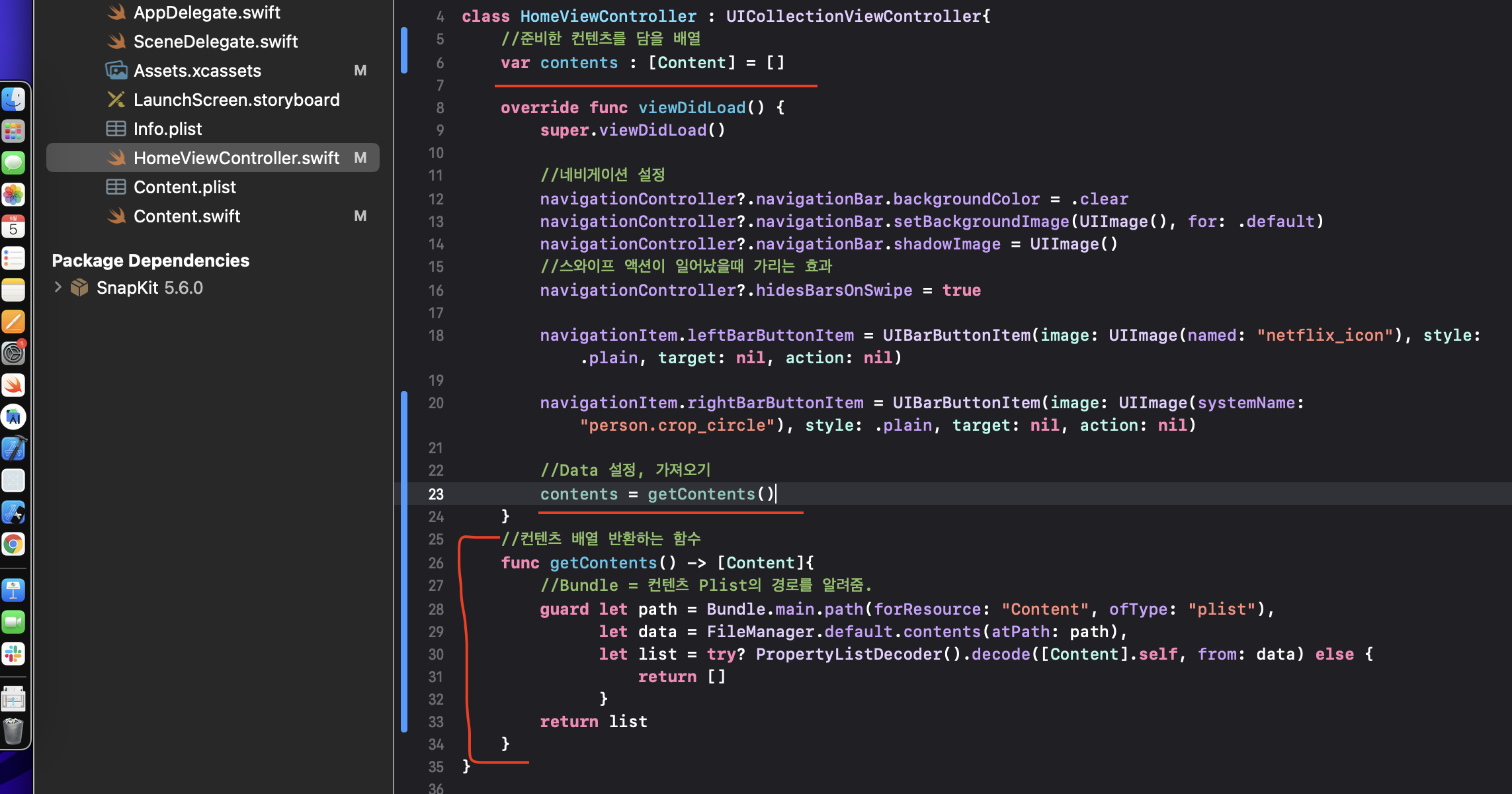 다음으로 저는 강의 자료에서 제공되는 컨텐츠 plist를 가져왔습니다.