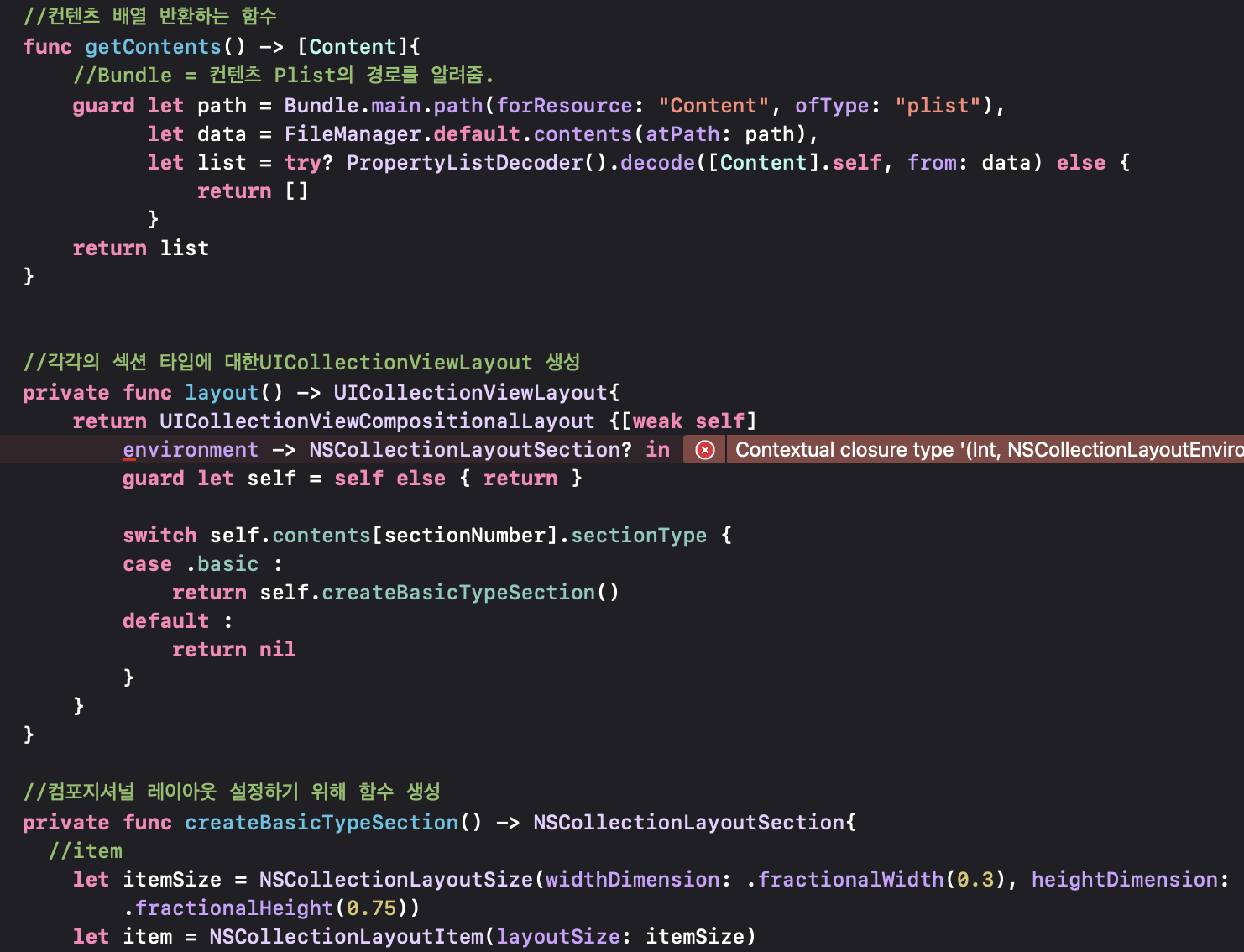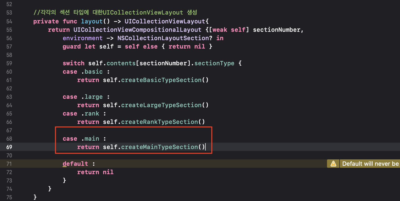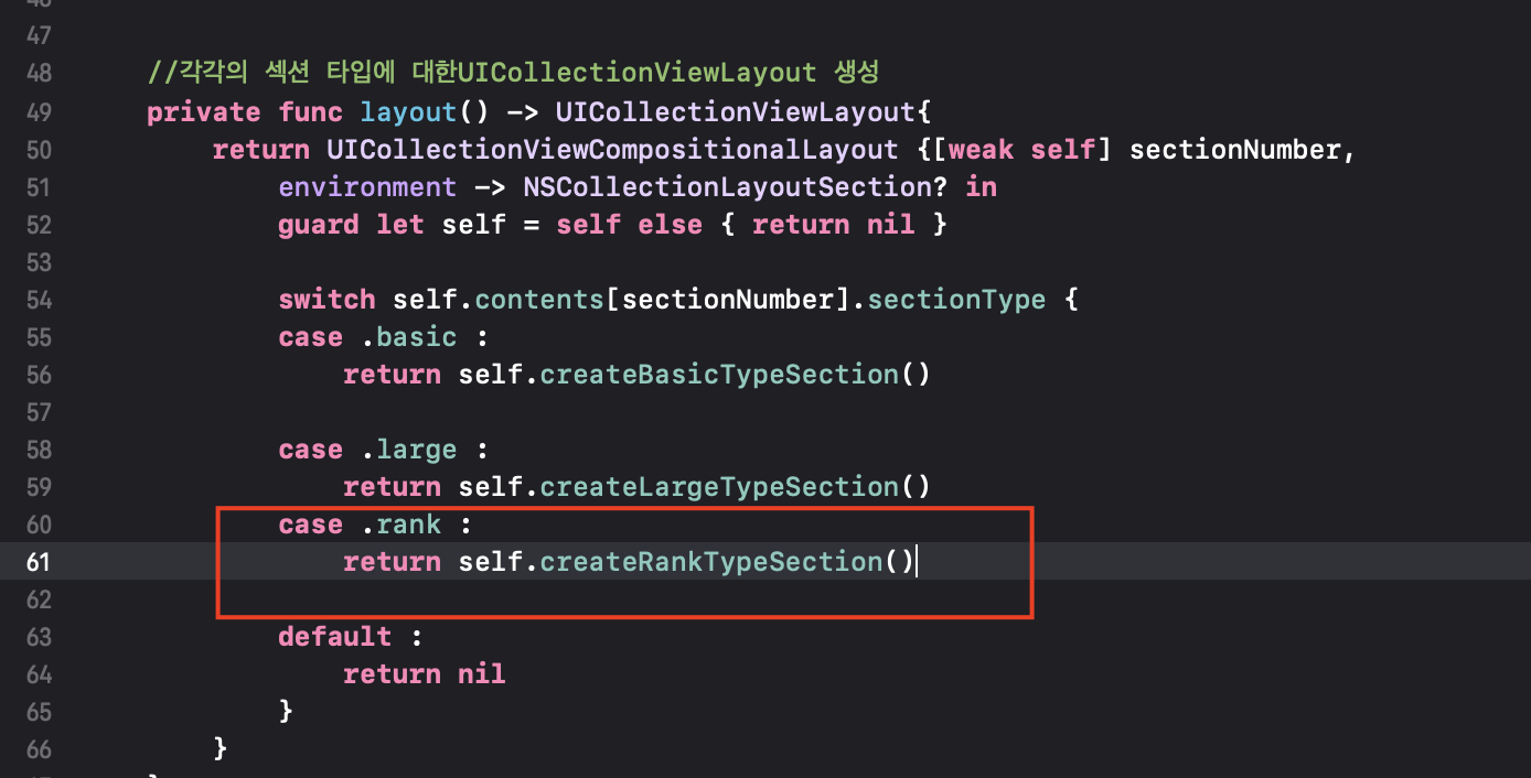 이렇게 베이직과는 거의 비슷하지만 그룹의 사이즈와 설정만 다르게 Large타입의 섹션을 만들어주는 함수를 선언합니다.