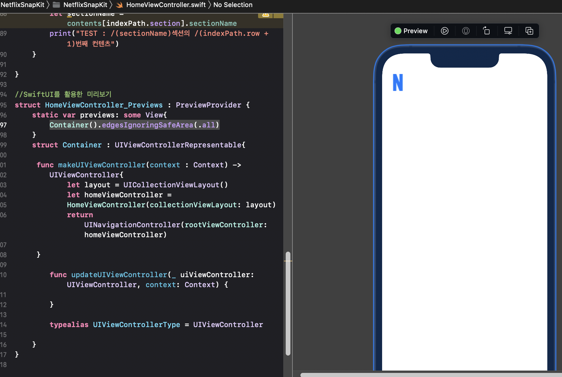 UIKIT을 이용해서 작성하고있기에 미리보기 용도로만 사용할 것입니다. 프리뷰를 볼 수 있다 정도로만 이해하면 좋을 것 같습니다.