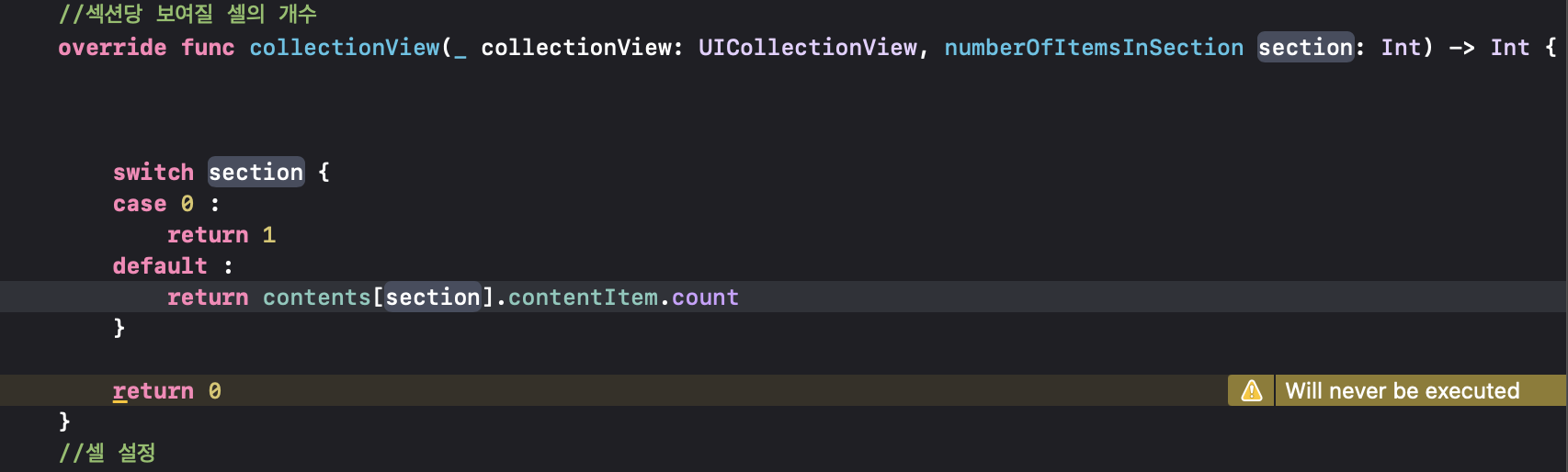 각각 섹션이 가지는 컨텐츠 아이템의 배열을 로우로 둘것입니다.