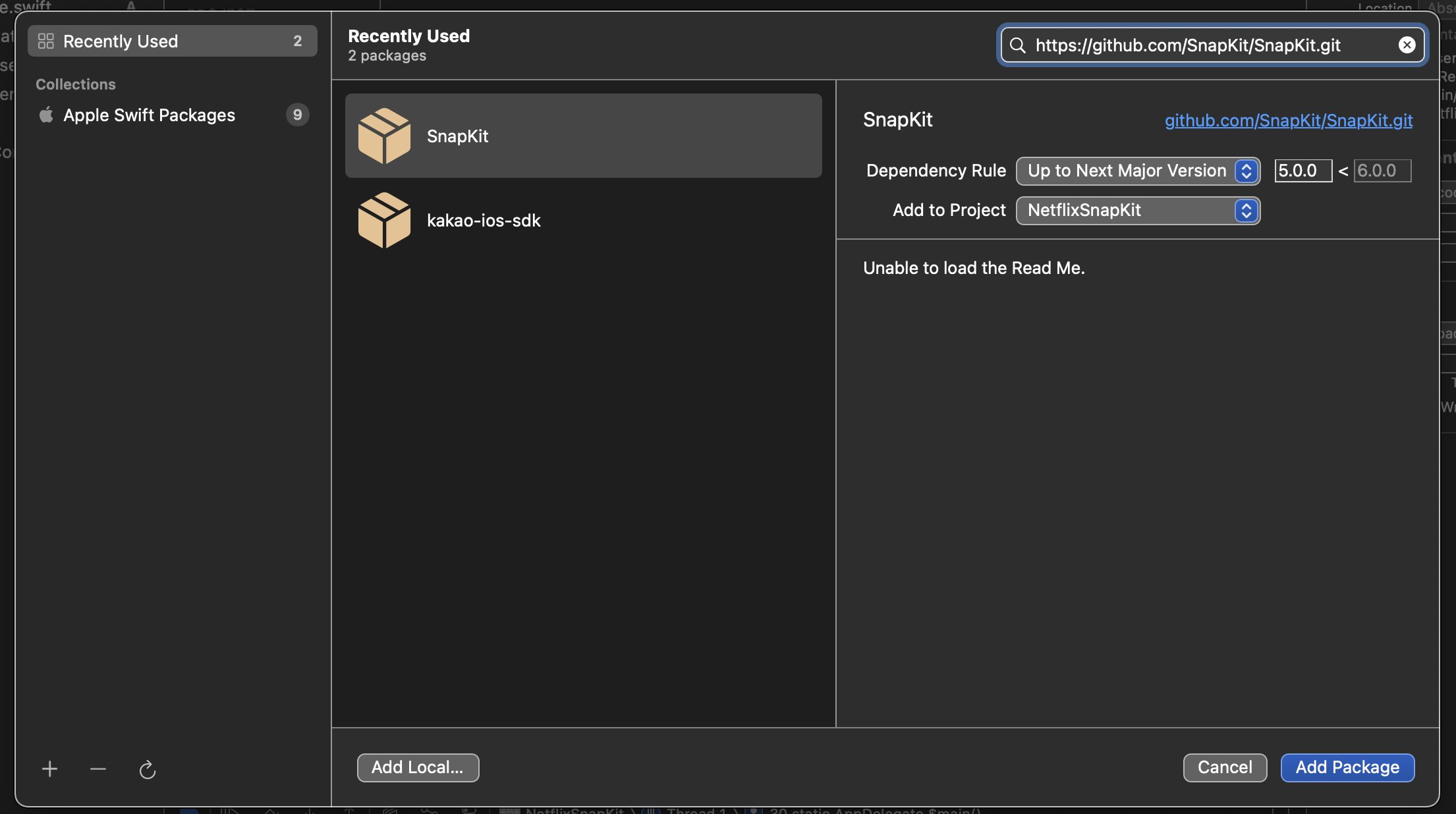 SnapKit을 사용하기 위해서 Swift Package Manager를 통해 추가해줄 것입니다.