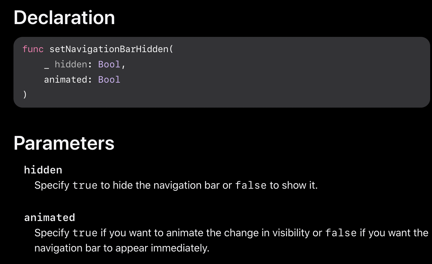 difference between navigationBar.isHidden and setNavigationBarHidden