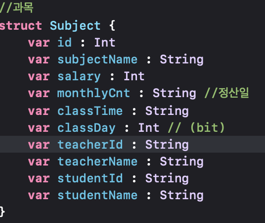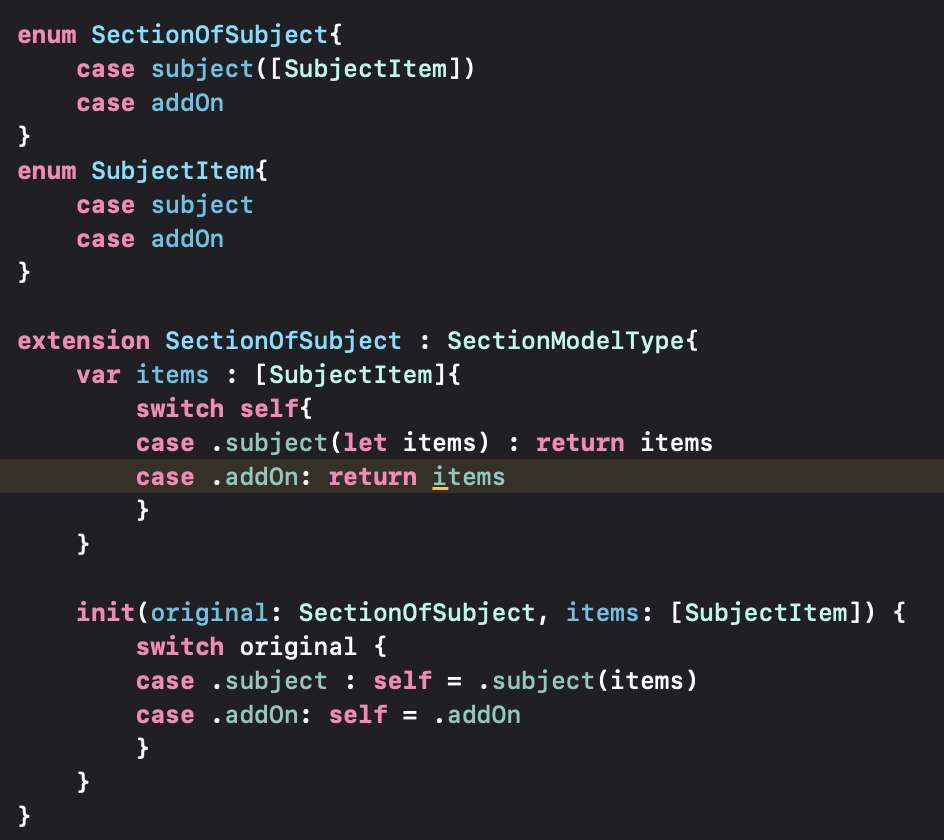 - SectionOfSubject - Section에 사용될 타입
