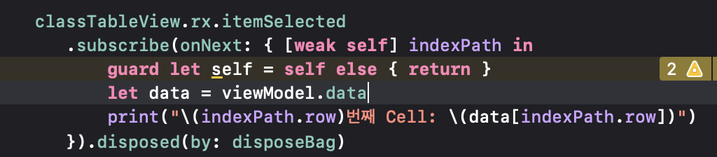 다른 방법으로 이전 RxSwift를 공부하면서 정리한 글의 예시처럼 RxSwift와 RxDataSource에서
