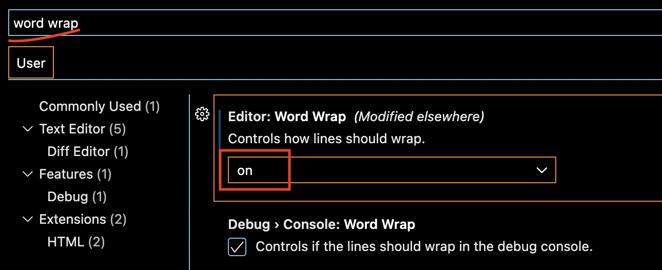 다음은 word wrap을 On으로 설정해줍니다.