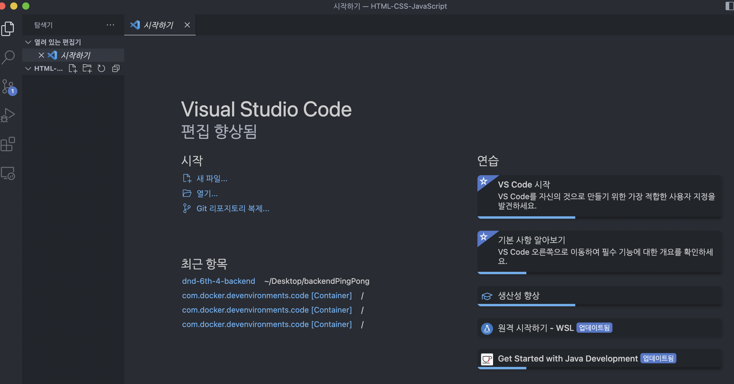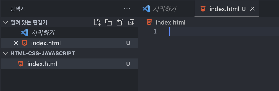TIL폴더 안에 HTML CSS를 공부하는 폴더를 만들고 열어주었습니다.