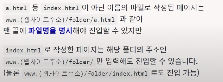 여기서 index.html 명은 특정 폴더의 디폴트 페이지 이름이라고 생각하시면 됩니다.
