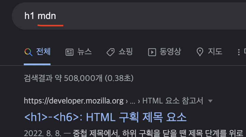 추가로 알고 싶은 태그를 검색창에 입력하고 뒤에 mdn을 입력하면 해당 태그의 신뢰성있는 정보를 알 수 있다고 해요.