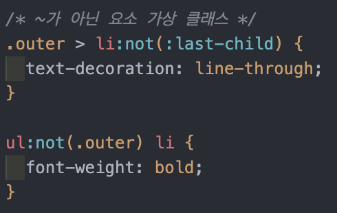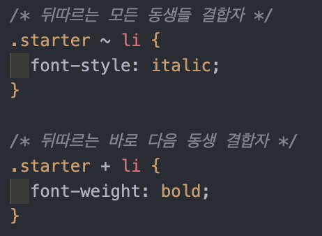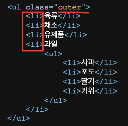 : 해당 태그들의 요소들을 선택하여 CSS 속성 적용. 모든 요소를 선택하는 것보다 우선순위를 가짐.
