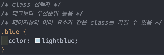 : blue라는 클래스를 가진 요소들만 CSS 적용.