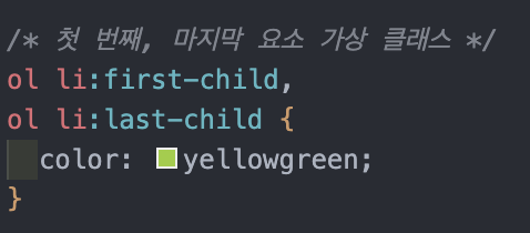 : ol태그의 첫번째 자식 태그와 마지막 자식 태그 요소에 CSS 적용
