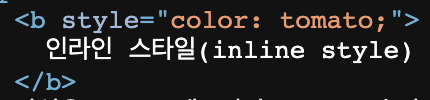 - inline style : 태그 안에 style이라는 속성을 이용해서 적용, 그러나 HTML과 분리되지 않기때문에 특별한 경우가 아니면 사용 안 함.