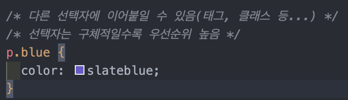 : p태그를 가지며 blue클래스를 가진 요소들에게 CSS적용. 다른 선택자에 이어 붙이는 경우.