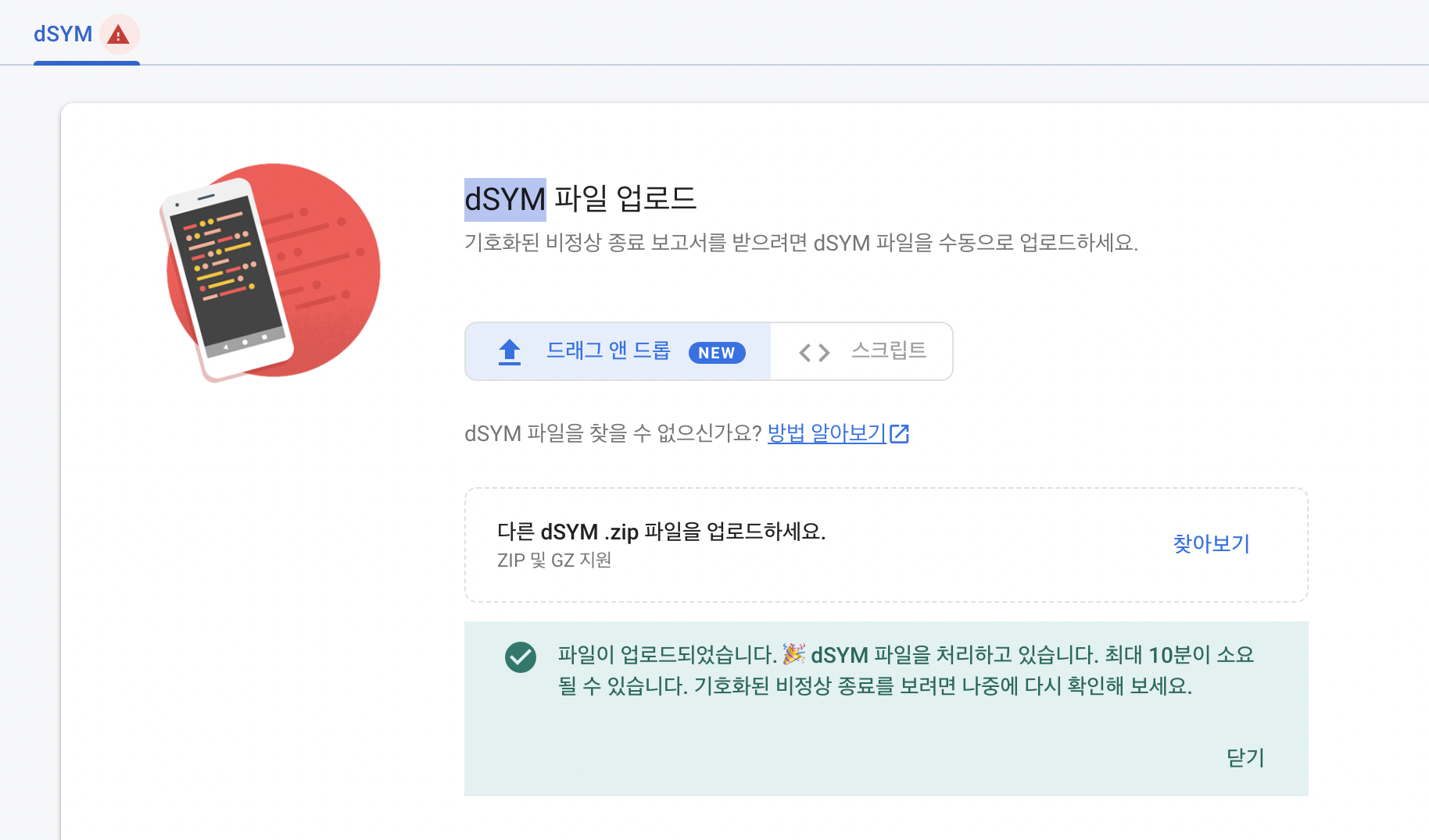 파이어 베이스에서 Crashlytics를 활성화하고 SDK를 설치하였습니다.